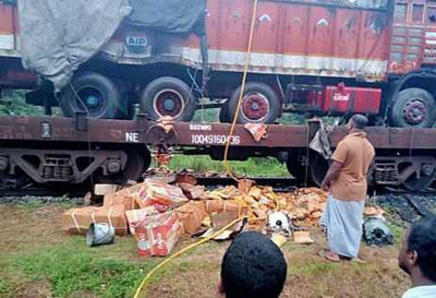 ಮುoಬೈ ಕೋಲಾಡ್ ನಿಂದ ಮಂಗಳೂರು ಸುರತ್ಕಲ್ ಕಡೆಗೆ ಲಾರಿಗಳನ್ನು ಹೊತ್ತು ಸಾಗುತ್ತಿದ್ದ ರೋ ರೋ ಗೂಡ್ಸ್ ರೈಲು ಮಂಗಳವಾರ ಮುಂಜಾನೆ ಬೈಂದೂರು ತಾಲೂಕಿನ ಬಿಜೂರು ರೈಲ್ವೆ ನಿಲ್ದಾಣದ ಸಮೀಪ ಬಂದಾಗ ಆಕಸ್ಮಿಕ ಬೆಂಕಿ ಕಾಣಿಸಿಕೊಂಡಿದೆ. ಲಾರಿಯೊಂದರಲ್ಲಿ ಬೆಂಕಿ ಹತ್ತಿಕೊಂಡಿರುವುದನ್ನು ನೋಡಿದ ಸಿಬಂದಿ ತಕ್ಷಣ ಗೂಡ್ಸ್ ರೈಲು ನಿಲ್ಲಿಸಿ ಬೆಂಕಿ ಆರಿಸಲು ಪ್ರಯತ್ನಿಸಿದ್ದಾರೆ. ಬೈಂದೂರು ಅಗ್ನಿ ಶಾಮಕ ದಳದವರು ಸ್ಥಳಕ್ಕೆ ಆಗಮಿಸಿ ಬೆಂಕಿ ಆರಿಸಿದ್ದಾರೆ. ಲಾರಿಯೊಳಗಿದ್ದ ತಿಂಡಿ ತಿನಿಸುಗಳು ಭಾಗಶಃ ಸುಟ್ಟು ಹೋಗಿದೆ.