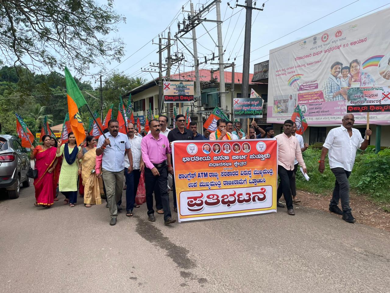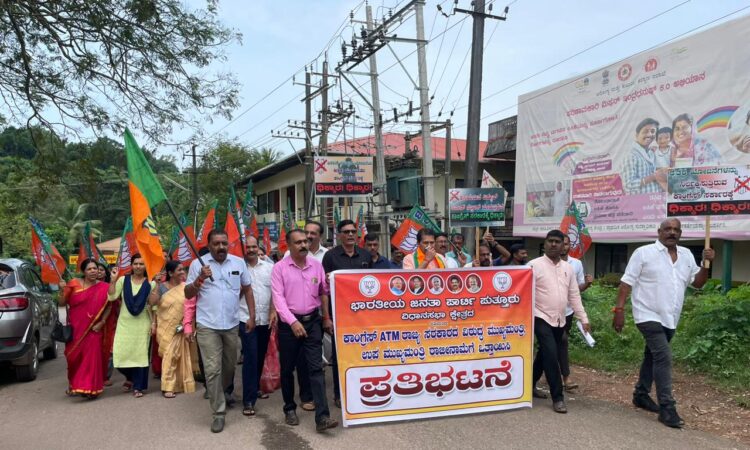 ಪುತ್ತೂರು : ಭಾರತೀಯ ಜನತಾ ಪಾರ್ಟಿ ಪುತ್ತೂರು ವಿಧಾನಸಭಾ ಕ್ಷೇತ್ರದ ವತಿಯಿಂದ ಕಾಂಗ್ರೆಸ್ ATM ರಾಜ್ಯ ಸರಕಾರದ ವಿರುದ್ಧ ಮುಖ್ಯಮಂತ್ರಿ, ಉಪ ಮುಖ್ಯಮಂತ್ರಿ ರಾಜೀನಾಮೆಗೆ ಒತ್ತಾಯಿಸಿ ಇಂದು ಪುತ್ತೂರಿನಲ್ಲಿ ಪ್ರತಿಭಟನೆ ನಡೆಯಿತು.