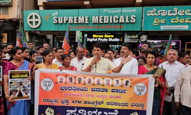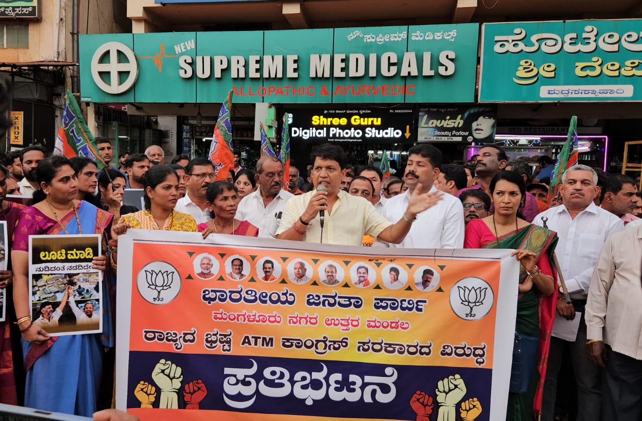 ಭಾರತೀಯ ಜನತಾ ಪಕ್ಷ ಮಂಗಳೂರು ಉತ್ತರ ಮಂಡಲದ ವತಿಯಿಂದ ಕಾಂಗ್ರೆಸ್ ಭ್ರಷ್ಟಾಚಾರದ ವಿರುದ್ದ ಕಾವೂರು ಜಂಕ್ಷನ್ ನಲ್ಲಿ ಆಯೋಜಿಸಲಾದ ಪ್ರತಿಭಟನೆಯಲ್ಲಿ ಭಾಗವಹಿಸಿ ಅವರು ಮಾತನಾಡಿದರು.