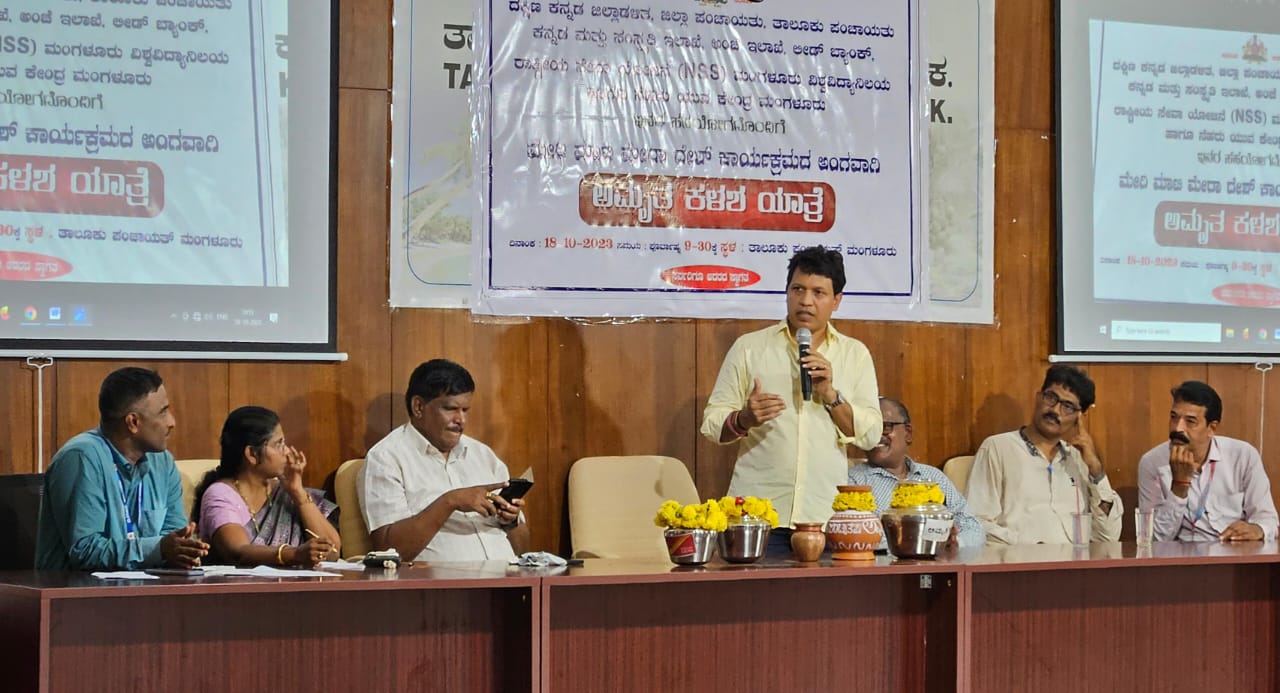 ದಕ್ಷಿಣ ಕನ್ನಡ ಜಿಲ್ಲಾಡಳಿತ, ಜಿಲ್ಲಾ ಪಂಚಾಯತ್, ತಾಲೂಕು ಪಂಚಾಯತ್, ಕನ್ನಡ ಸಂಸ್ಕøತಿ ಇಲಾಖೆ, ಅಂಚೆ ಇಲಾಖೆ,ಲೀಡ್ ಬ್ಯಾಂಕ್, ರಾಷ್ಟ್ರೀಯ ಸೇವಾ ಯೋಜನೆ ಮಂಗಳೂರು ವಿಶ್ವವಿದ್ಯಾನಿಲಯದ ಹಾಗೂ ನೆಹರು ಯುವ ಕೇಂದ್ರ ಮಂಗಳೂರು ಇದರ ಸಹಯೋಗದೊಂದಿಗೆ ಮೇರಿ ಮಾಟಿ ಮೇರಾ ದೇಶ್ ನನ್ನ ಮಣ್ಣು ನನ್ನ ದೇಶ ಕಾರ್ಯಕ್ರಮದ ಅಂಗವಾಗಿ ಅಮೃತ ಕಲಶ ಯಾತ್ರೆ ಯ ಸಮಾರೋಪ ಸಭಾ ಕಾರ್ಯಕ್ರಮದಲ್ಲಿ ಭಾಗವಹಿಸಿ ಮಾತನಾಡಿದರು.
