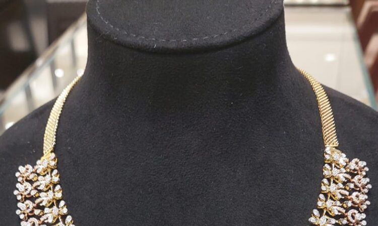 ವಜ್ರದ ನೆಕ್ಲಿಸ್ ನ್ನು ಸೇವಾರೂಪವಾಗಿ ಸಮರ್ಪಿಸಲಾಗುತ್ತಿದೆ.