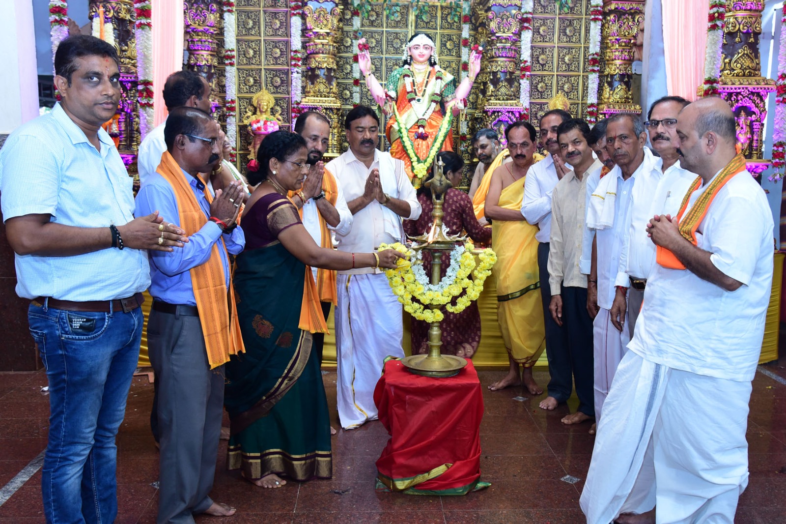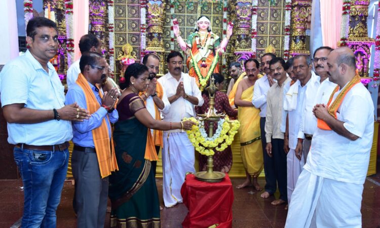ವಿಟ್ಲ: ಶ್ರೀ ದೇವತಾ ಸಮಿತಿ ವಿಟ್ಲ ಇದರ 52ನೇ ವರ್ಷದ ‘ವಿಟ್ಲ ದಸರಾ’ ಕಾರ್ಯಕ್ರಮಕ್ಕೆ ವಿಟ್ಲ ಲಯನ್ಸ್ ಕ್ಲಬ್ ಅಧ್ಯಕ್ಷೆ ಜಲಜಾಕ್ಷಿ ಬಾಲಕೃಷ್ಣ ದೀಪ ಬೆಳಗಿಸಿ ಚಾಲನೆ ನೀಡಿದರು. ಕಾರ್ಯಕ್ರಮದ ಅಧ್ಯಕ್ಷತೆಯನ್ನು ಪುತ್ತೂರು ತಾಲೂಕು ಕರ್ನಾಟಕ ಜರ್ನಲಿಸ್ಟ್ ಯೂನಿಯನ್ ಅಧ್ಯಕ್ಷ ರಾಮದಾಸ್ ಶೆಟ್ಟಿ (Vtv) ವಹಿಸಿದ್ದರು. ಕೃಷ್ಣಪ್ರಸಾದ್ ಶೆಣೈ ಧ್ವಜಾರೋಹಣ ನೆರವೇರಿಸಿದರು. ವಿಟ್ಲ ರೋಟರಿ ಕ್ಲಬ್ ಅಧ್ಯಕ್ಷ ಕಿರಣ್ ಕುಮಾರ್ ಬ್ರಹ್ಮಾವರ್ ಮುಖ್ಯ ಅತಿಥಿಯಾಗಿ ಭಾಗವಹಿಸಿದ್ದರು.