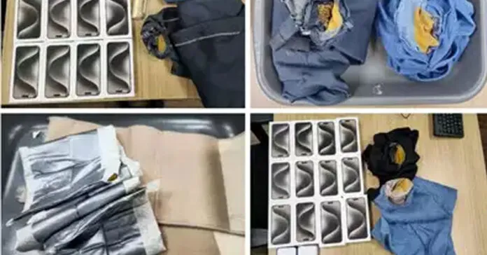 ಚೆಕ್-ಇನ್ ಬ್ಯಾಗೇ ಜ್ ನಲ್ಲಿ ಇರಿಸಲಾದ ಪ್ಯಾಕೆಟ್ ಗಳಲ್ಲಿ ಐಫೋನ್ ಗಳನ್ನು ಸುತ್ತಿಡಲಾಗಿತ್ತು ಮತ್ತು ಇಬ್ಬರು ಪ್ರಯಾಣಿಕರ ಸೊಂಟದ ಪಟ್ಟಿಯಲ್ಲಿ ಚಿನ್ನದ ಪೇಸ್ಟ್ ಅನ್ನು ಮರೆಮಾಡಲಾಗಿದೆ ಎಂದು ಅಧಿಕಾರಿ ತಿಳಿಸಿದ್ದಾರೆ