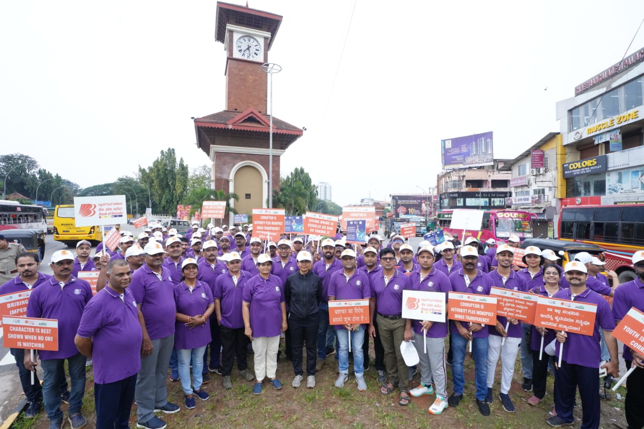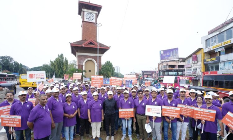 ಮಂಗಳೂರು : ಬ್ಯಾಂಕ್ ಆಫ್ ಬರೋಡಾ ಮಂಗಳೂರು ವಲಯದ ಶಾಖೆಯಿಂದ “ಭ್ರಷ್ಟಾಚಾರ ತ್ಯಜಿಸಿ, ರಾಷ್ಟçಕ್ಕೆ ಬದ್ಧರಾಗಿರಿ” ಎಂಬ ಧ್ಯೇಯದೊಂದಿಗೆ ಭಾರತದ ಉಕ್ಕಿನ ಮನುಷ್ಯ ಶ್ರೀ ಸರ್ದಾರ್ ವಲ್ಲಭ ಭಾಯಿ ಪಟೇಲ್ ಅವರ ಜನ್ಮ ದಿನಾಚರಣೆಯ ಸ್ಮರಣಾರ್ಥ 31ರಂದು ಮಂಗಳವಾರ ಬೆಳಿಗ್ಗೆ ವಾಕಥಾನ್ ಆಯೋಜಿಸಿತು. ಶ್ರೀ ಅನುಪಮ್ ಅಗರ್ವಾಲ್, ಐಪಿಎಸ್ ಅತಿಥಿಯಾಗಿ ಹಾಜರಿದ್ದು, ವಾಕಥಾನ್ಗೆ ಚಾಲನೆ ನೀಡಿದರು. ವಿಜಯ ಟವರ್ಸ್ ಜ್ಯೋತಿ ವೃತ್ತದಿಂದ, ಎ.ಬಿ.ಶೆಟ್ಟಿ ವೃತ್ತದವರೆಗೆ ವಾಕಥಾನ್ ನಡೆಯಿತು.