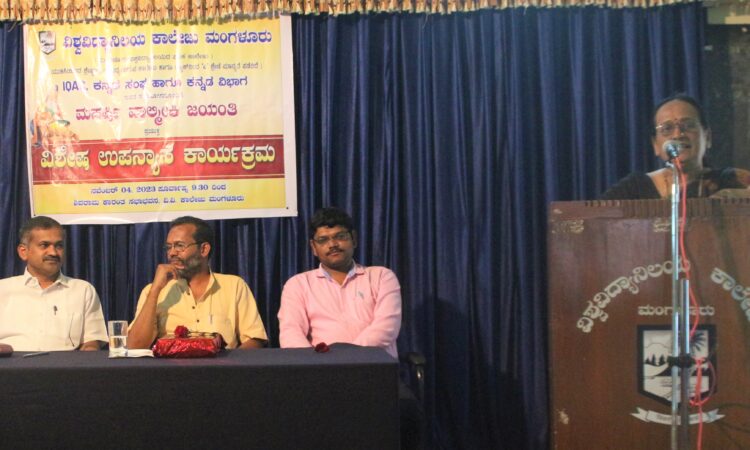 ನಗರದ ವಿಶ್ವವಿದ್ಯಾನಿಲಯ ಕಾಲೇಜಿನ ಶಿವರಾಮ ಕಾರಂತ ಸಭಾಭವನದಲ್ಲಿ ವಿವಿ ಕಾಲೇಜಿನ ಕನ್ನಡ ಸಂಘ, ಕನ್ನಡ ವಿಭಾಗ ಮತ್ತು ಆಂತರಿಕ ಗುಣಮಟ್ಟ ಖಾತರಿ ಕೋಶ ಇದರ ಸಹಯೋಗದಲ್ಲಿ ಆಯೋಜಿಸಲಾಗಿದ್ದ ಮಹರ್ಷಿ ವಾಲ್ಮೀಕಿ ಜಯಂತಿ ಪ್ರಯುಕ್ತ ಏರ್ಪಡಿಸಿದ್ದ ವಿಶೇಷ ಉಪನ್ಯಾಸ ಕಾರ್ಯಕ್ರಮದಲ್ಲಿ ಉಪನ್ಯಾಸ ನೀಡಿದರು.
