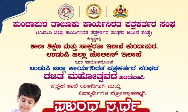 ಕುಂದಾಪುರ: ಕುಂದಾಪುರ ತಾಲೂಕು ಕಾರ್ಯನಿರತ ಪತ್ರಕರ್ತರ ಸಂಘದ ನೇತೃತ್ವದಲ್ಲಿ ಶಾಲಾ ಶಿಕ್ಷಣ ಮತ್ತು ಸಾಕ್ಷರತಾ ಇಲಾಖೆ ಕುಂದಾಪುರ ಹಾಗೂ ಉಡುಪಿ ಜಿಲ್ಲಾ ಪೊಲೀಸ್ ಇಲಾಖೆಯ ಸಹಯೋಗದೊಂದಿಗೆ ಕುಂದಾಪುರ ಶೈಕ್ಷಣಿಕ ವಲಯದ ಕನ್ನಡ ಮಾಧ್ಯಮ ಶಾಲೆಯ ಎಸ್.ಎಸ್.ಎಲ್.ಸಿ ವಿದ್ಯಾರ್ಥಿಗಳಿಗಾಗಿ ಪೊಲೀಸ್ ಎಂದರೇ ಭಯವಲ್ಲ ಭರವಸೆ ಎಂಬ ಶೀರ್ಷಿಕೆಯಡಿ ‘ನಾ ಕಂಡoತೆ ಪೊಲೀಸ್’ ಎಂಬ ವಿಷಯದ ಕುರಿತು ವಿದ್ಯಾರ್ಥಿಗಳಲ್ಲಿರುವ ಪೊಲೀಸರ ಬಗೆಗಿನ ಅಭಿಪ್ರಾಯವನ್ನು ಅಕ್ಷರ ರೂಪದಲ್ಲಿ ಹೊರ ಹಾಕಲು ನ.18ರ ಶನಿವಾರ ಅಪರಾಹ್ನ 2.30ಕ್ಕೆ ಕುಂದಾಪುರ ಬೋರ್ಡ್ ಹೈಸ್ಕೂಲ್ನ ಕಲಾಮಂದಿರದಲ್ಲಿ ಪ್ರಬಂಧ ಸ್ಪರ್ಧೆ ನಡೆಯಲಿದೆ.