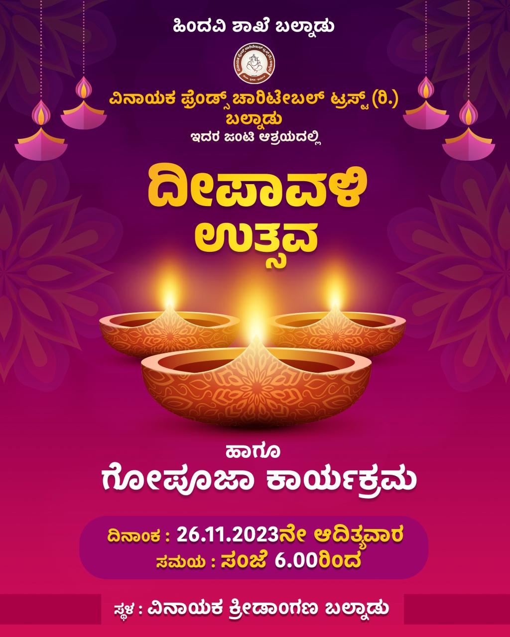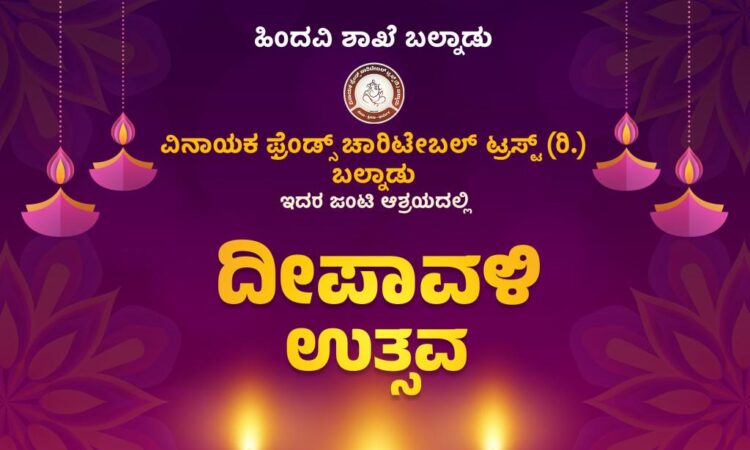 ವಿನಾಯಕ ಫ್ರೆಂಡ್ಸ್ ಚಾರಿಟೇಬಲ್ ಟ್ರಸ್ಟ್ (ರಿ.) ಬಲ್ನಾಡು ವತಿಯಿಂದ ನ.26ರಂದು ದೀಪಾವಳಿ ಉತ್ಸವ ಹಾಗೂ ಗೋ ಪೂಜೆ ಕಾರ್ಯಕ್ರಮ – ಕಹಳೆ ನ್ಯೂಸ್