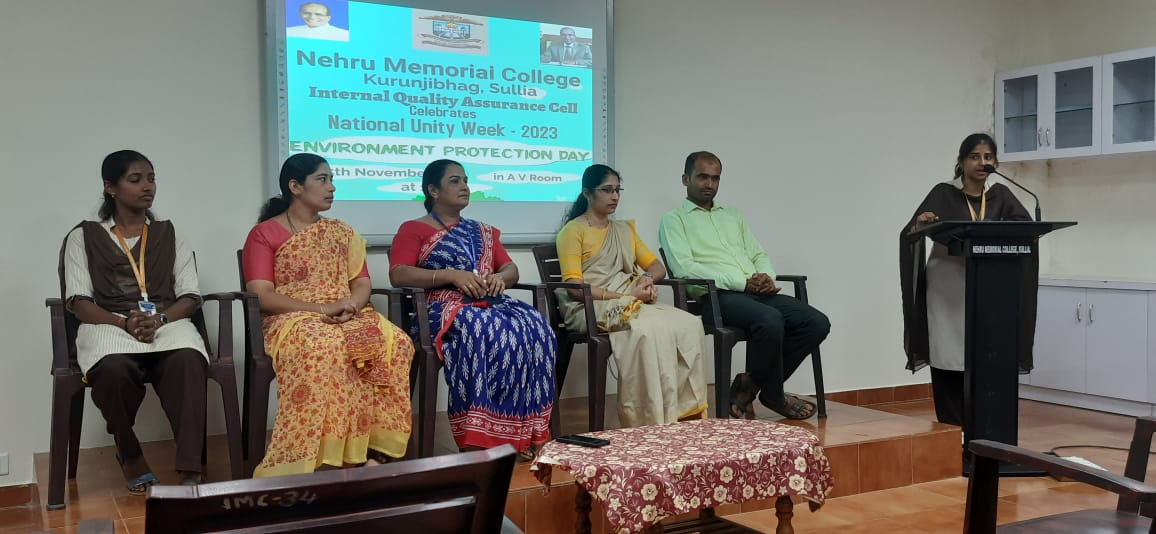 ನೆಹರೂ ಮೆಮೋರಿಯಲ್ ಕಾಲೇಜಿನ ಐಕ್ಯೂಎಸಿ ಮತ್ತು ನೇಚರ್ ಕ್ಲಬ್ ವತಿಯಿಂದ ರಾಷ್ಟೀಯ ಏಕತಾ ಸಪ್ತಾಹದ ಅಂಗವಾಗಿ ‘ಪರಿಸರ ಸಂರಕ್ಷಣೆ’ ಕುರಿತಾಗಿ ಮಾಹಿತಿ ಕಾರ್ಯಕ್ರಮ ನ.25 ರಂದು ಕಾಲೇಜಿನ ದೃಶ್ಯ ಶ್ರವಣ ಕೊಠಡಿಯಲ್ಲಿ ನಡೆಯಿತು.
