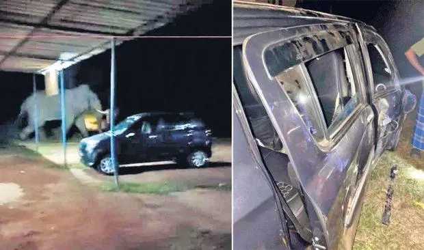 ಆನೆಯು ದಾಡೆಯ ಮೂಲಕ ಕಾರನ್ನು ಕಟ್ಟಡದ ಗೋಡೆಗೆ ಗುದ್ದಿ ಜಖಂಗೊಳಿಸಿ ಅನಂತರ ಅಲ್ಲಿಂದ ಮನೆಯ ಕಾಂಪೌಂಡ್ಗೆ ನುಗ್ಗಿ ಅಲ್ಲಿಂದ ತೋಟಕ್ಕೆ ಹೋಗಿದೆ. ಬಳಿಕ ಸಮೀಪದ ಪರಿಸರದಲ್ಲಿ ಕಂಡಿದ್ದಾಗಿ ಸ್ಥಳೀಯರು ತಿಳಿಸಿದ್ದಾರೆ.