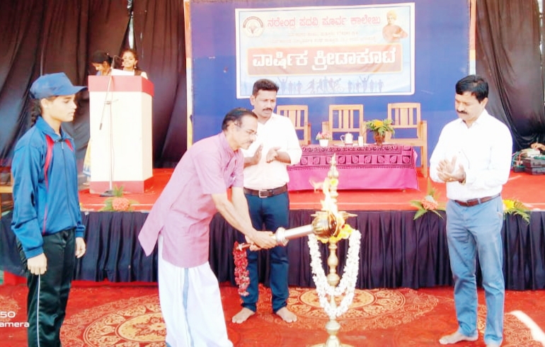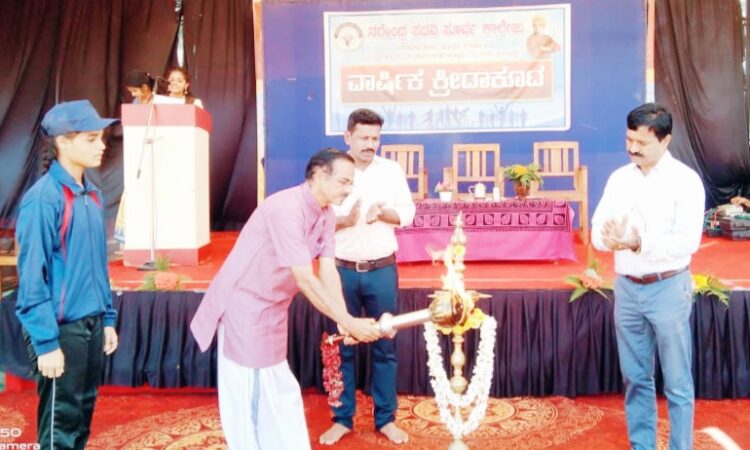 ಜಿಲ್ಲಾ ,ರಾಜ್ಯ ಮತ್ತು ರಾಷ್ಟçಮಟ್ಟದ ವಿವಿಧ ಕ್ರೀಡಾ ಸ್ಪರ್ಧೆಗಳಲ್ಲಿ ಭಾಗವಹಿಸಿ ವಿಜೇತರಾದ ವಿದ್ಯಾರ್ಥಿಗಳಾದ ದ್ವಿತೀಯ ವಿಜ್ಞಾನ ವಿಭಾಗದ ಮನೀಶಾ , ದ್ವಿತೀಯ ವಾಣಿಜ್ಯ ವಿಭಾಗದ ಯಶಸ್ವಿನಿ , ಪ್ರಥಮ ವಿಜ್ಞಾನ ವಿಭಾಗದ ಶಿವಕುಮಾರ್,ಅಮಿತ್,ಸಿಂಚನಾ ಬಿ. ಇವರು ಕ್ರೀಡಾಜ್ಯೋತಿಯನ್ನು ತರುವುದರ ಮೂಲಕ ಕರ್ಯಕ್ರಮಕ್ಕೆ ಚಾಲನೆ ನೀಡಿದರು. ಕಾಲೇಜಿನ ವಿದ್ಯಾರ್ಥಿಗಳ ಆಕರ್ಷಕ ಬ್ಯಾಂಡ್ ಸೆಟ್ ಪಥಸಂಚಲನ ಕರ್ಯಕ್ರಮಕ್ಕೆ ವಿಶೇಷ ಮೆರುಗನ್ನು ನೀಡಿತು.