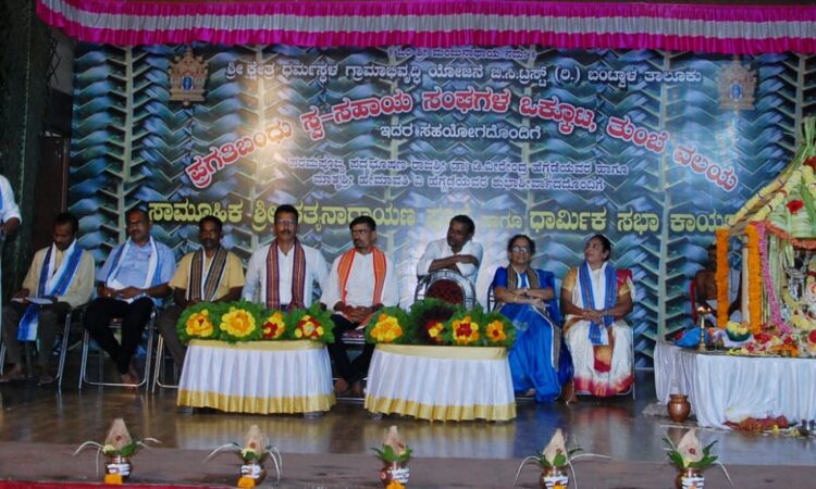 ಶ್ರೀ ಕ್ಷೇತ್ರ ಧರ್ಮಸ್ಥಳ ಗ್ರಾಮಾಭಿವೃದ್ಧಿ ಯೋಜನೆ ಬಿ ಸಿ ಟ್ರಸ್ಟ್ (ರಿ) ಬಂಟ್ವಾಳ ತಾಲೂಕು ಪ್ರಗತಿಬಂದು ಸ್ವಸಹಾಯ ಸಂಘಗಳ ಒಕ್ಕೂಟ ತುಂಬೆ ವಲಯದ ವತಿಯಿಂದ ಸಾಮೂಹಿಕ ಶ್ರೀ ಸತ್ಯನಾರಾಯಣ ಪೂಜೆ ಹಾಗೂ ಧಾರ್ಮಿಕ ಸಭಾ ಕಾರ್ಯಕ್ರಮ – ಕಹಳೆ ನ್ಯೂಸ್
