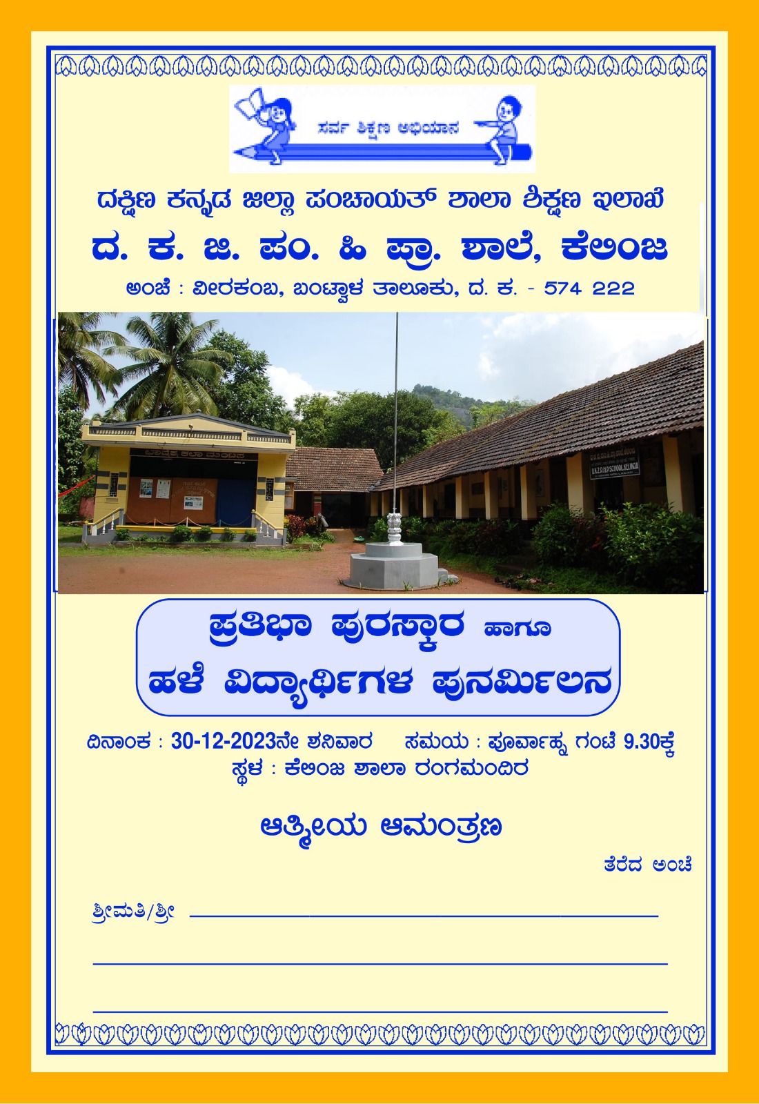 ಕೆಲಿಂಜ ಹಿರಿಯ ಪ್ರಾಥಮಿಕ ಶಾಲೆಯಲ್ಲಿ ಡಿ.30ರಂದು ಶಾಲಾ ವಾರ್ಷಿಕೋತ್ಸವ, ಮಕ್ಕಳ ಪ್ರತಿಭಾ ಪುರಸ್ಕಾರ ಹಾಗೂ ಹಳೆ ವಿದ್ಯಾರ್ಥಿಗಳ ಪುನರ್ಮಿಲನ ಕಾರ್ಯಕ್ರಮ- ಕಹಳೆ ನ್ಯೂಸ್