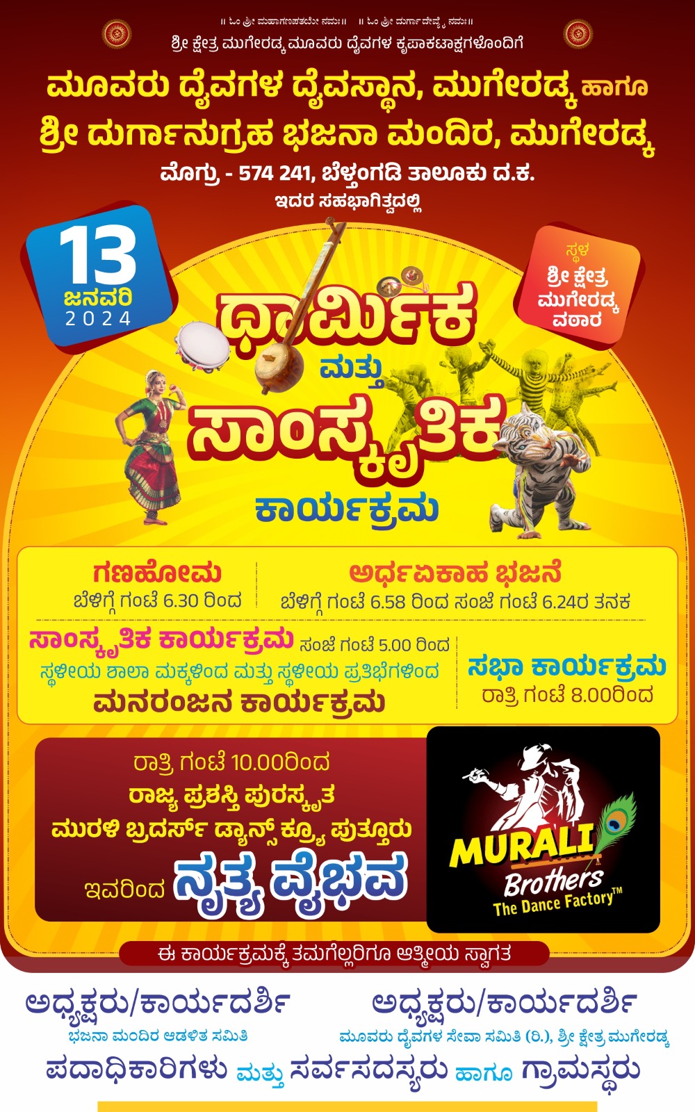 ಮುಗೇರಡ್ಕ ಮೂವರು ದೈವಗಳ ದೈವಸ್ಥಾನ ಹಾಗೂ ಶ್ರೀ ದುರ್ಗಾನುಗ್ರಹ ಭಜನಾ ಮಂದಿರ ಸಹಭಾಗಿತ್ವದಲ್ಲಿ ಇಂದು ಅರ್ಧಏಕಾಹ ಭಜನೆ – ಕಹಳೆ ನ್ಯೂಸ್