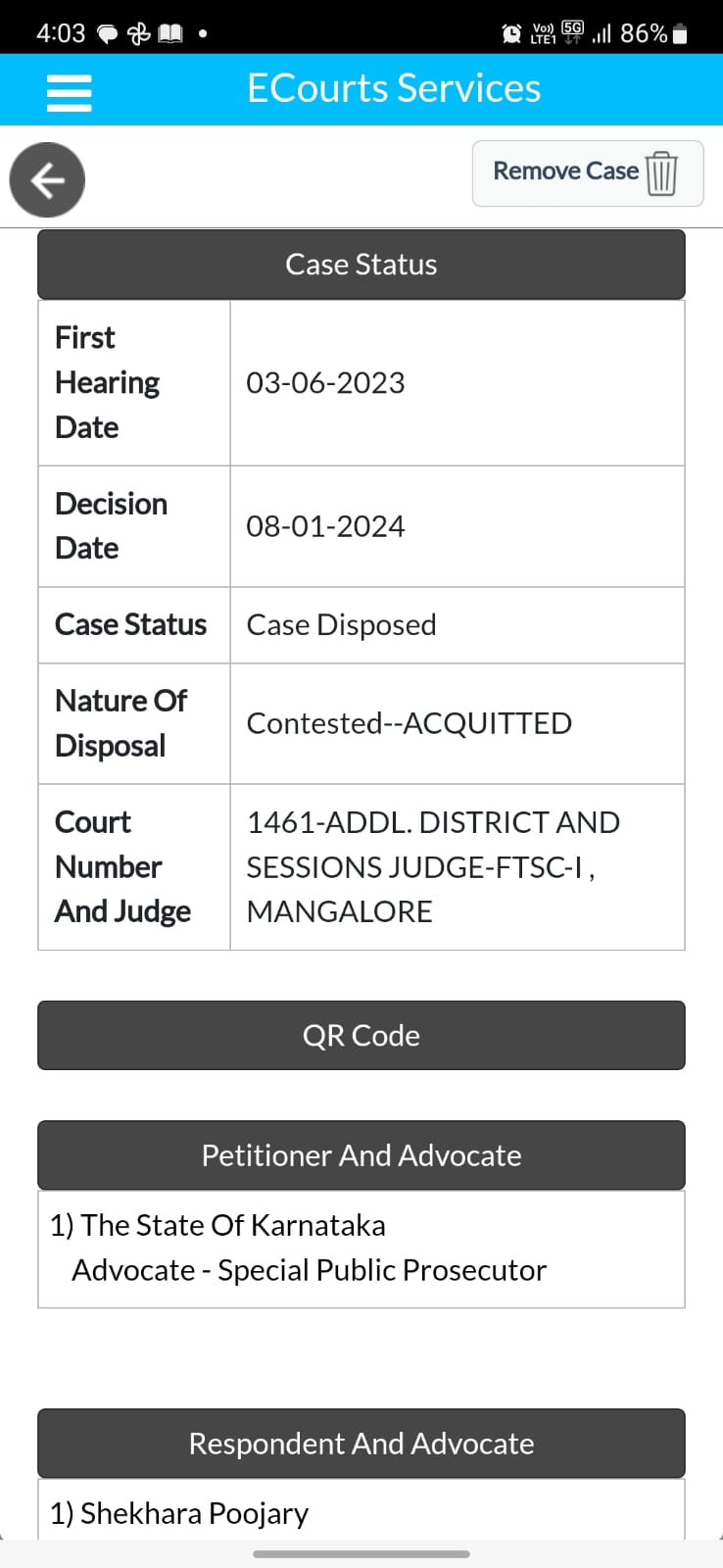 ದಕ್ಷಿಣ ಕನ್ನಡ ಜಿಲ್ಲೆಯ ಬಂಟ್ವಾಳ ತಾಲೂಕಿನ ಕುಕ್ಕುರಿ ಎಂಬಲ್ಲಿ ವಾಸವಾಗಿದ್ದ ಶೇಖರ್ ಪೂಜಾರಿ ತನ್ನ ನೆರೆಯ ಮನೆಯ ಅಪ್ರಾಪ್ತ ಬಾಲಕಿ ಮೇಲೆ ಲೈಂಗಿಕ ದೌರ್ಜನ್ಯ ಎಸಗಿದ್ದ ಎಂದು ಆರೋಪಿಸಲಾಗಿತ್ತು.