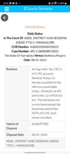ಆದರೆ ಅಭಿಯೋಜನೆಯು ಅಪರಾಧವನ್ನು ಸಾಬೀತುಮಾಡಲು ವಿಫಲವಾಗಿದೆ ಎಂದು ಅಭಿಪ್ರಾಯಪಟ್ಟು ಮಾನ್ಯ ನ್ಯಾಯಾಲಯವು ಆರೋಪಿಯನ್ನು ಖುಲಾಸೆಗೊಳಿಸಿ ಆದೇಶ ನೀಡಿತು.