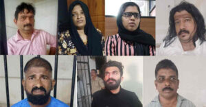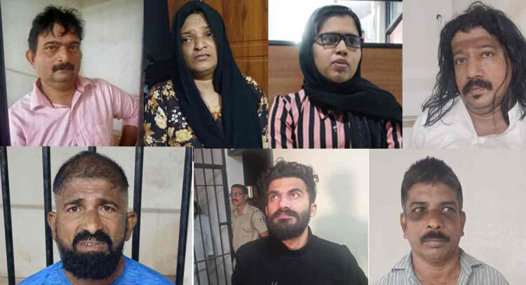 ಕೋಜಿಕ್ಕೋಡ್ ನ ಪಿ.ಫೈಝಲ್ (37), ಈತನ ಪತ್ನಿ ಎಂ. ಪಿ ಲುಬ್ನಾ (29), ಕಾಸರಗೋಡು ಶಿರಿಬಾಗಿಲಿನ ಎನ್.ಸಿದ್ದೀಕ್(48), ಮಾಂಗಾಡ್ ನ ದಿಲ್ಷಾದ್ (40), ಮುಟ್ಟತ್ತೋಡಿ ಯ ನಫೀಸತ್ ಮಿಸ್ರಿಯಾ ( 40), ಮಾಂಗಾಡ್ ನ ಅಬ್ದುಲ್ ಕುಂuಟಿಜeಜಿiಟಿeಜ (32) ಮತ್ತು ಪಡನ್ನಕ್ಕಾಡಿನ ರಫೀಕ್ (42) ಬಂಧಿತರು ಎಂದು ಗುರುತಿಸಲಾಗಿದೆ.