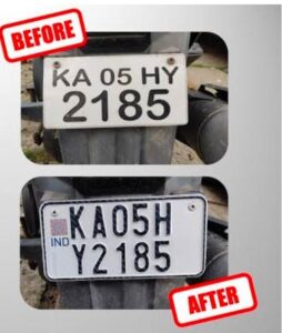 - ಯಾವುದೇ ತೆರೆದ ಮಾರುಕಟ್ಟೆಯ ರಸ್ತೆ ಬದಿಯ ಮಾರಾಟಗಾರರಿಂದ ನಕಲಿ ಹೊಲೊಗ್ರಾಮ್ / IND ಮಾರ್ಕ್ ಇಂಡಿಯಾ ಎಂದು ಕೆತ್ತಲಾದ ಅಥವಾ ಕೆತ್ತಿದಂತಹ ಅನುಕರಣೆಯ HSRP, ಒಂದೇ ರೀತಿಯ ಪ್ಲೇಟ್ಗಳು, ಸ್ಮಾರ್ಟ್ ನಂಬರ್ ಪ್ಲೇಟ್ಗಳನ್ನು ಅಳವಡಿಸುವಂತಿಲ್ಲ. ಅವುಗಳು HSRP ಫಲಕಗಳಾಗಿರುವುದಿಲ್ಲ.