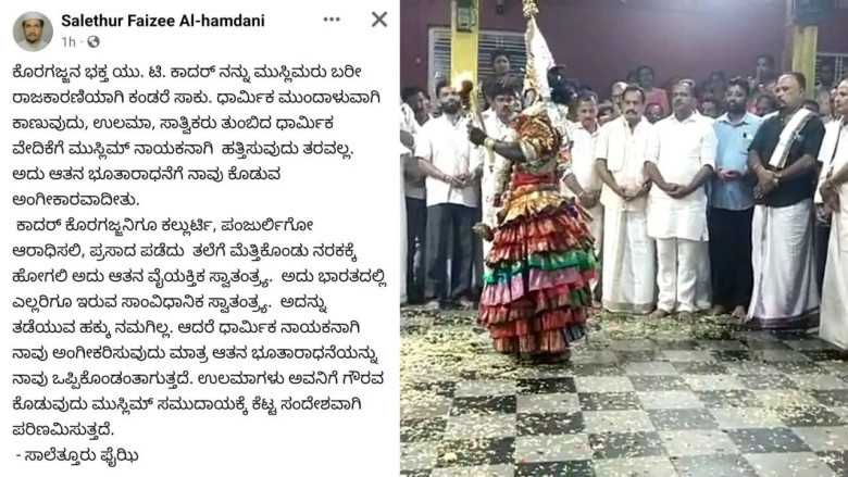 ಮುಸ್ಲಿಂ ಧಾರ್ಮಿಕ ಮುಖಂಡ ಸಾಲೆತ್ತೂರು ಫೈಝಿ ಎಂಬುವವರು ಯು.ಟಿ. ಖಾದರ್ ಬಗ್ಗೆ ಆಕ್ಷೇಪಿಸಿ ಸಾಮಾಜಿಕ ಜಾಲತಾಣದಲ್ಲಿ ಪೋಸ್ಟ್ ಹಾಕಿದ್ದಾರೆ. ‘ಕೊರಗಜ್ಜನ ಭಕ್ತ ಯು.ಟಿ ಖಾದರ್ ನನ್ನು ಮುಸ್ಲಿಮರು ಬರೀ ರಾಜಕಾರಣಿಯಾಗಿ ಕಂಡರೆ ಸಾಕು. ಧಾರ್ಮಿಕ ಮುಖಂಡರಾಗಿ ಕಾಣುವುದು ಬೇಡ. ಉಲೆಮಾ, ಸಾತ್ವಿಕರು ತುಂಬಿದ ಧಾರ್ಮಿಕ ವೇದಿಕೆಗೆ ಮುಸ್ಲಿಂ ನಾಯಕನಾಗಿ ಹತ್ತಿಸುವುದು ತರವಲ್ಲ. ಅದು ಆತನ ಭೂತಾರಾಧನೆಗೆ ನಾವು ಕೊಡುವ ಅಂಗೀಕಾರವಾಗಿತ್ತೆ. ಖಾದರ್ ಕೊರಗಜ್ಜನಿಗೂ ಕಲ್ಲುರ್ಟಿ, ಪಂಜುರ್ಲಿಗೂ ಆರಾಧಿಸಲಿ. ಪ್ರಸಾದ ಪಡೆದು ತಲೆಗೆ ಮೆತ್ತಿಕೊಂಡು ನರಕಕ್ಕೆ ಹೋಗಲಿ. ಅದು ಆತನ ವೈಯಕ್ತಿಕ ಸ್ವಾತಂತ್ರ್ಯ. ಅದು ಭಾರತದಲ್ಲಿ ಎಲ್ಲರಿಗೂ ಇರುವ ಸಂವಿಧಾನಿಕ ಸ್ವಾತಂತ್ರ. ಅದನ್ನು ತಡೆಯುವ ಹಕ್ಕು ನನಗಿಲ್ಲ. ಆದರೆ ಧಾರ್ಮಿಕ ನಾಯಕನಾಗಿ ನಾವು ಅಂಗೀಕರಿಸುವುದು, ಆತನ ಭೂತಾರಾಧನೆಯನ್ನು ನಾವು ಒಪ್ಪಿಕೊಂಡAತಾಗುತ್ತದೆ. ಉಲಮಾಗಳು ಅವನಿಗೆ ಗೌರವ ಕೊಡುವುದು ಮುಸ್ಲಿಂ ಸಮುದಾಯಕ್ಕೆ ಕೆಟ್ಟ ಸಂದೇಶವಾಗಿ ಪರಿಣಮಿಸುತ್ತದೆ ಎಂದು ಯು.ಟಿ.ಖಾದರ್ ನಡವಳಿಕೆ ಆಕ್ಷೇಪಿಸಿ ಸಾಲೆತ್ತೂರು ಫೈಝಿ ಪೋಸ್ಟ್ ಹಂಚಿಕೊAಡಿದ್ದಾರೆ.
