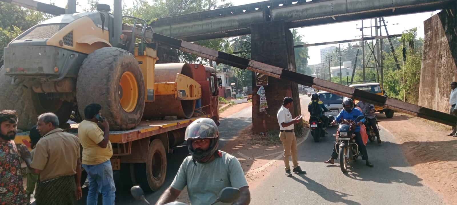 ಬಿಸಿರೋಡಿನ ಕೈಕಂಬದ ರೈಲ್ವೆ ಓವರ್ ಬ್ರಿಡ್ಜ್ ಅಡಿಭಾಗದಲ್ಲಿ ರೋಲರ್ ನ್ನು ತುಂಬಿಕೊಂಡು ಹೋಗುತ್ತಿದ್ದ ಲಾರಿ ಸಿಲುಕಿ, ಸಂಚಾರಕ್ಕೆ ಅಡ್ಡಿ – ಕಹಳೆ ನ್ಯೂಸ್