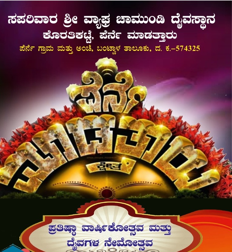 ಫೆ 22ರಿಂದ ಸಪರಿವಾರ ವ್ಯಾಘ್ರ ಚಾಮುಂಡಿ ದೈವಸ್ಥಾನದ ಪ್ರತಿಷ್ಠಾ ವಾರ್ಷಿಕೋತ್ಸವ ಹಾಗೂ ದೈವಗಳ ನೇಮೋತ್ಸವ – ಕಹಳೆ ನ್ಯೂಸ್