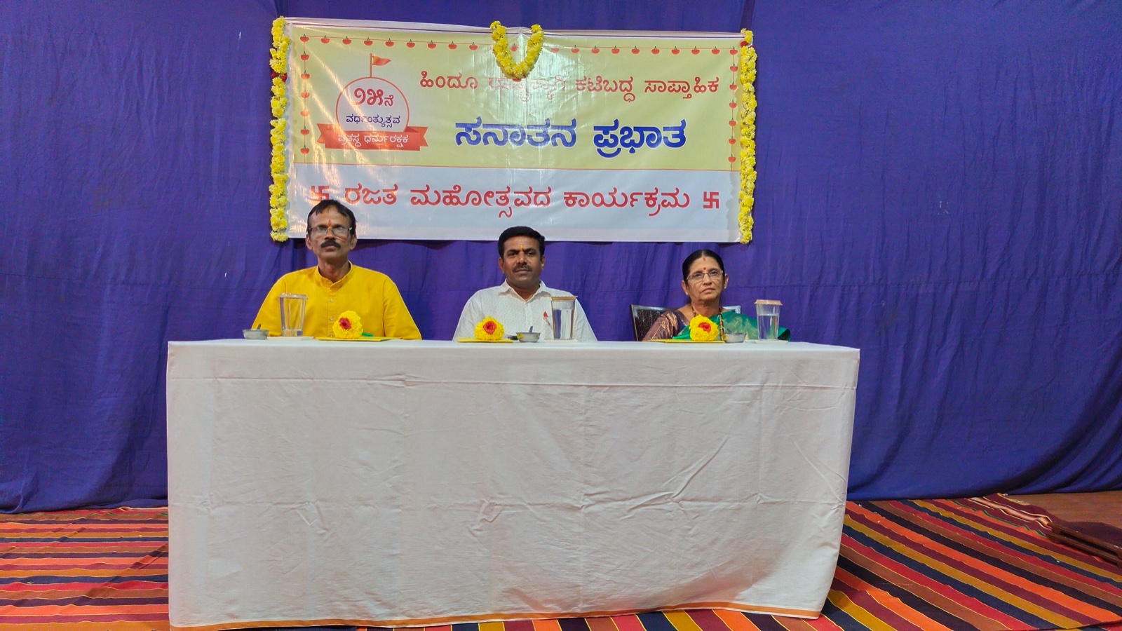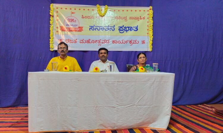 ಕನ್ನಡ ಸಾಪ್ತಾಹಿಕ ಸನಾತನ ಪ್ರಭಾತ’ದ ರಜತ ಮಹೋತ್ಸವದ ನಿಮಿತ್ತ ಉಜಿರೆಯ ಶ್ರೀ ಸೀತಾರಾಮ ಕಲಾಮಂದಿರದಲ್ಲಿ ವರ್ಧಂತ್ಯುತ್ಸವ ಕಾರ್ಯಕ್ರಮದಲ್ಲಿ ಅವರು ಮಾತಾನಾಡಿದರು. ಈ ಸಂದರ್ಭ ಕಾರ್ಯಕ್ರಮದಲ್ಲಿ ನೂರಕ್ಕಿಂತಲೂ ಹೆಚ್ಚು ಸನಾತನ ಪ್ರಭಾತದ ವಾಚಕರು. ಜಾಹೀರಾತುದಾರರು, ಹಿತಕಿಂತಕರು ಹಾಗೂ ಧರ್ಮಭಿಮಾನಿಗಳು ಉಪಸ್ಥಿತರಿದ್ದರು.