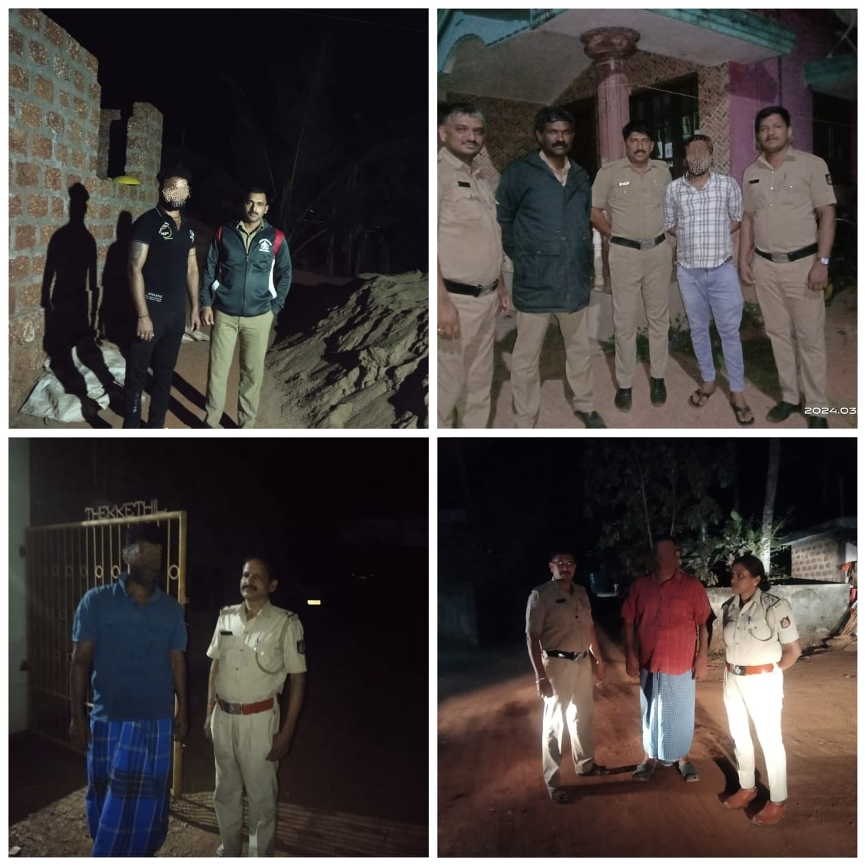 ಮುಂಬರುವ ಲೋಕಸಭಾ ಚುನಾವಣೆಯ ಹಿನ್ನೆಲೆಯಲ್ಲಿ, ಮುಂಜಾಗ್ರತಾ ಕ್ರಮವಾಗಿ, ದಕ್ಷಿಣ ಕನ್ನಡ ಜಿಲ್ಲಾ ವ್ಯಾಪ್ತಿಯಲ್ಲಿ ವಾಸಿಸುತ್ತಿರುವ, ರೌಡಿ ಶೀಟರ್ ಗಳು ಹಾಗೂ ಇತರ ಅಪರಾಧ ಹಿನ್ನೆಲೆಯನ್ನು ಹೊಂದಿರುವ ಆಸಾಮಿಗಳ ಮನೆಗಳಿಗೆ, ಆಯಾ ಠಾಣಾ ವ್ಯಾಪ್ತಿಯ ಠಾಣಾಧಿಕಾರಿಗಳು ದಿನಾಂಕ 29ರ ರಾತ್ರಿ, ಧಿಢೀರ್ ಭೇಟಿ ನೀಡಿ ಪರಿಶೀಲನೆ ನಡೆಸಿದರು ಹಾಗೂ ಸದ್ರಿ ಆಸಾಮಿಗಳಿಗೆ ಯಾವುದೇ ಕಾನೂನು ಬಾಹಿರ ಕೃತ್ಯಗಳಲ್ಲಿ ತೊಡಗಿಸಿಕೊಳ್ಳದಂತೆ ಎಚ್ಚರಿಕೆ ನೀಡಲಾಯಿತು.