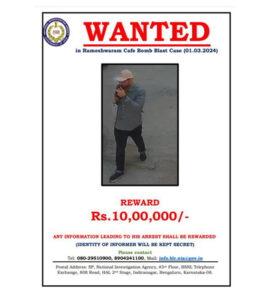 ಬೆಂಗಳೂರು : ರಾಮೇಶ್ವರಂ ಕೆಫೆ ಬ್ಲಾಸ್ಟ್ ಪ್ರಕರಣ : ಆರೋಪಿ ಸುಳಿವು ನೀಡಿದವರಿಗೆ 10ಲಕ್ಷ ಬಹುಮಾನ ಘೋಷಿಸಿದ ಎನ್ಐಎ – ಕಹಳೆ ನ್ಯೂಸ್