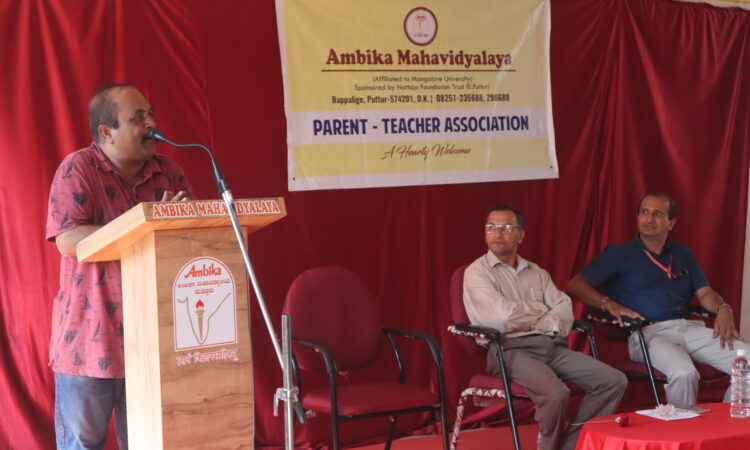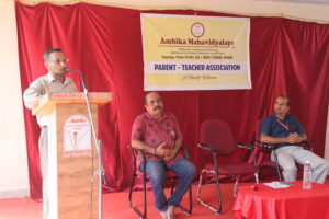 ಅಂಬಿಕಾ ಮಹಾವಿದ್ಯಾಲಯದ ಪ್ರಭಾರ ಪ್ರಾಂಶುಪಾಲ ಚಂದ್ರಕಾAತ್ ಗೋರೆ ಪ್ರಾಸ್ತಾವಿಕವಾಗಿ ಮಾತನಾಡಿ, ವಿದ್ಯಾರ್ಥಿಗಳ ಶಿಕ್ಷಣಕ್ಕೆ ಪೂರಕವಾದ ವಾತಾವರಣ ಕಾಲೇಜಿನಲ್ಲಿ ಇದ್ದು, ಸಂಸ್ಕಾರ ಹಾಗೂ ಶಿಸ್ತನ್ನು ವಿದ್ಯಾರ್ಥಿಗಳು ರೂಢಿಸಿಕೊಳ್ಳಲು ಆದ್ಯತೆ ನೀಡಲಾಗಿದೆ. ಶಿಕ್ಷಕರ ಜೊತೆಗೆ ರಕ್ಷಕರೂ ಕೈ ಜೋಡಿಸಿದಾಗ ಮಾತ್ರ ವಿದ್ಯಾರ್ಥಿಗಳ ಬೆಳವಣಿಗೆ ಸಾಧ್ಯವಾಗುತ್ತದೆ ಎಂದು ಹೇಳಿದರು.