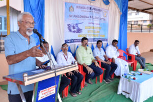 ಕಾರ್ಯಕ್ರಮದ ಆಧ್ಯಕ್ಷತೆಯನ್ನುವಹಿಸಿದ್ದ ಕಾಲೇಜಿನ ಕ್ಯಾಂಪಸ್ ನಿರ್ದೇಶಕರಾದ ವಂ| ಸ್ಟ್ಯಾನಿ ಪಿಂಟೋರವರು “ಯಾವುದೇ ಕ್ರೀಡೆ ಇರಲಿ ಕ್ರೀಡಾ ಪಟುಗಳು ಮಾನಸಿಕವಾಗಿ ಹಾಗೂದೈಹಿಕವಾಗಿ ಸುದೃಢರಾಗಿರಬೇಕು. ಮಂಗಳೂರು ವಿಶ್ವ ವಿದ್ಯಾನಿಲಯವು ಈ ಕ್ರಿಕೆಟ್ ಸ್ಪರ್ಧೆಯನ್ನು ಏರ್ಪಡಿಸುವ ಮುಖಾಂತರ ಕ್ರೀಡಾಪಟುಗಳಿಗೆಉತ್ತಮ ಅವಕಾಶಗಳನ್ನು ಕಲ್ಪಿಸಿಕೊಟ್ಟಿದೆ. ಕ್ರೀಡಾಪಟುಗಳು ಕಠಿಣ ಪರಿಶ್ರಮದೊಂದಿಗೆ ಯಶಸ್ಸಿನತ್ತ ಸಾಗಲು ಮುಂದಡಿಯಿಡಬೇಕು” ಎಂದು