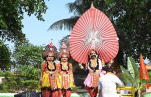 ಮೆರವಣಿಗೆಯಲ್ಲಿ ಪೂರ್ಣ ಕುಂಭ, 101 ಚೆಂಡೆ, ಕೀಲು ಕುದುರೆ, ಕೊಂಬು, ವಾದ್ಯ, ಕುಣಿತ ಭಜನೆ, ತಟ್ಟಿರಾಯ, ನಾಸಿಕ್ ಬ್ಯಾಂಡ್, ಯಕ್ಷಗಾನ, ವಿವಿಧ ವೇಷಭೂಷಣಗಳು, ಟ್ಯಾಬ್ಲೋಗಳು, 70ಕ್ಕೂ ಮಿಕ್ಕಿ ಹೊರೆ ಕಾಣಿಕೆಯ ವಾಹನಗಳು, 4 ಸಾವಿರಕ್ಕೂ ಹೆಚ್ಚು ಭಕ್ತರು ಮೆರವಣಿಗೆಯಲ್ಲಿ ಸಾಗಿ ಬಂದು ದೇವಸ್ಥಾನ ತಲುಪಿದರು.
