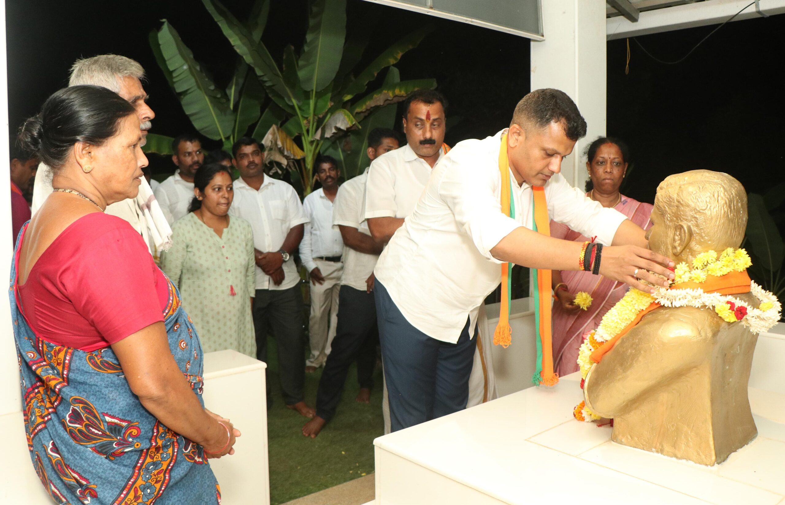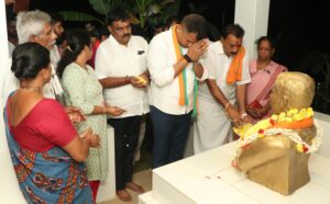 ನೆಟ್ಟಾರು ಅವರ ಪುತ್ಥಳಿಗೆ ಮಾಲಾರ್ಪಣೆ ಮಾಡಿದ ಬಳಿಕ ಅವರ ಕುಟುಂಬದ ಜೊತೆ ಮಾತುಕತೆ ನಡೆಸಿದರು.