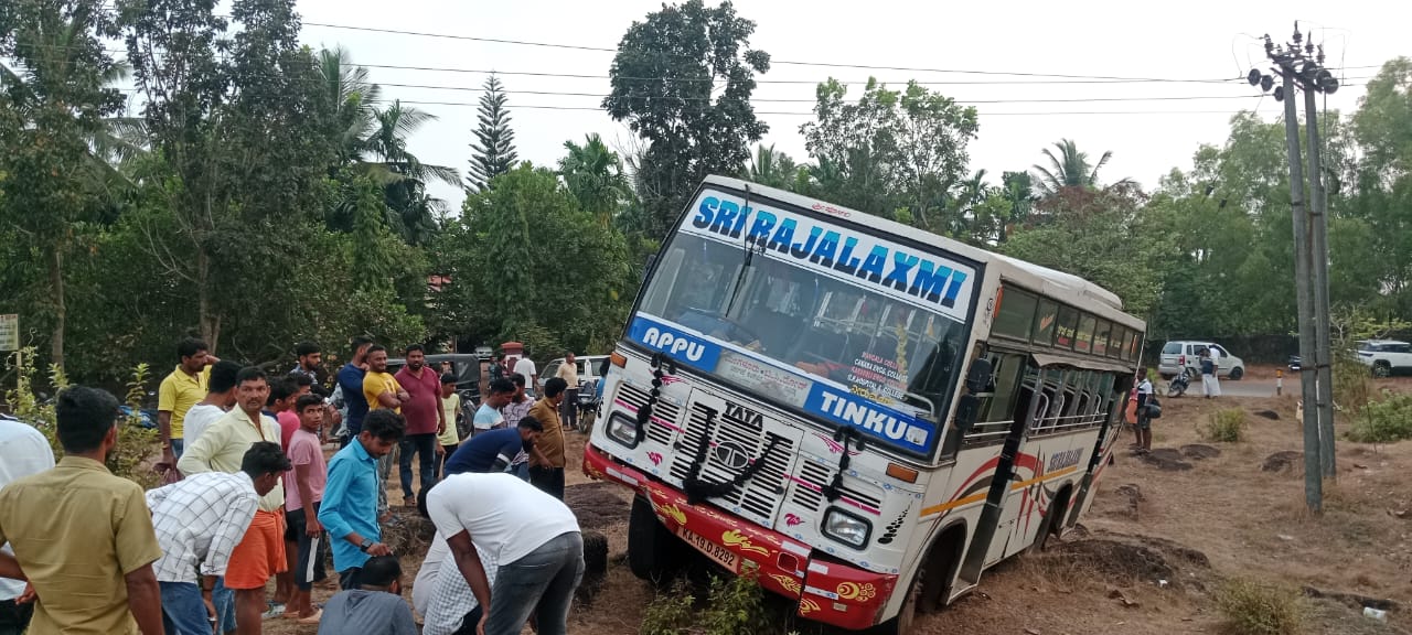 ಬಸ್ ಡಿಕ್ಕಿಯಾದ ರಭಸಕ್ಕೆ ಚಾಲಕನಿಗೆ ನಿಯಂತ್ರಣ ಸಾಧಿಸಲು ಸಾಧ್ಯವಾಗದೆ ಕೆಂಪುಕಲ್ಲಿನ ಕೋರೆಯ ಗುಡ್ಡದ ಮೇಲೆ ಹತ್ತಿ ವಾರೆಯಾಗಿ ನಿಂತುಕೊಂಡಿದೆ. ಅದೃಷ್ಟವಶಾತ್ ಬಸ್ ನಲ್ಲಿದ್ದ ಪ್ರಯಾಣಿಕರು ಯಾವುದೇ ಗಾಯವಿಲ್ಲದೆ ಪ್ರಾಣಾಪಾಯ ಇಲ್ಲದೆ ಪಾರಾಗಿದ್ದಾರೆ.