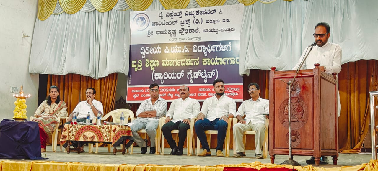 ಪುತ್ತೂರು: ರೈ ಎಸ್ಟೇಟ್ಸ್ ಎಜುಕೇಶನಲ್ ಆಂಡ್ ಚಾರಿಟೇಬಲ್ ಟ್ರಸ್ಟ್ ಹಾಗೂ ಶ್ರೀರಾಮ ಕೃಷ್ಣ ಪ್ರೌಢ ಶಾಲೆ ಕೊಂಬೆಟ್ಟು ಇದರ ವತಿಯಿಂದ ಪುತ್ತೂರಿನ ಬಂಟರ ಭವನದಲ್ಲಿ ದ್ವಿತೀಯ ಪಿಯುಸಿ ವಿದ್ಯಾರ್ಥಿಗಳಿಗೆ ವೃತ್ತಿ ಶಿಕ್ಷಣ ಮಾರ್ಗದರ್ಶನ ಕಾರ್ಯಾಗಾರವು ಮಾ.23 ರಂದು ನಡೆಯಿತು.