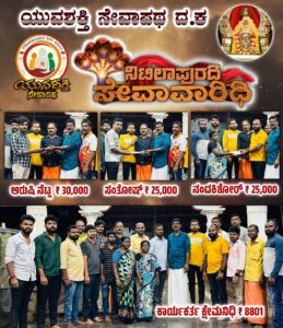 ಯುವಶಕ್ತಿ ಸೇವಾ ಪಥದ ವತಿಯಿಂದ ಸಮಾಜದಿಂದ ಸಮಾಜಕ್ಕೆ ಈತನಕ ಸುಮಾರು 70 ಲಕ್ಷ ರೂಪಾಯಿಯನ್ನು ವಿವಿಧ ಫಲಾನುಭವಿಗಳಿಗೆ ಹಸ್ತಾಂತರಿಸಲಾಗಿದೆ.