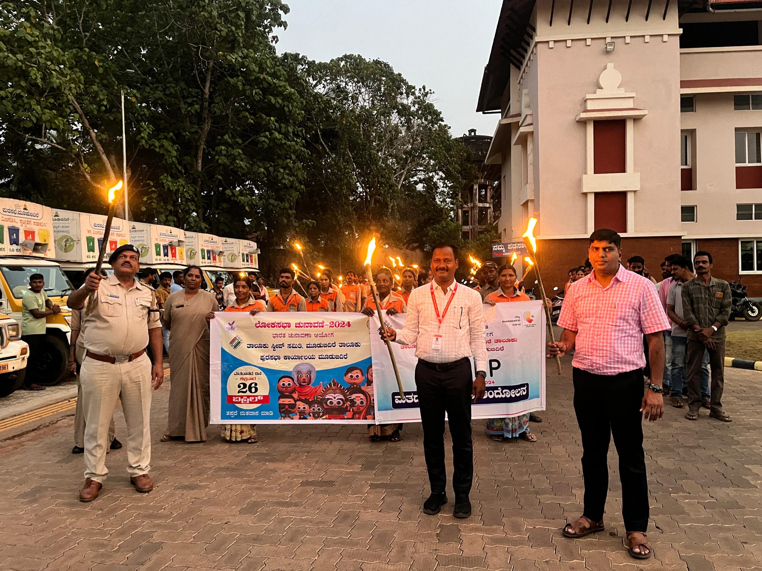 ಮೂಡುಬಿದಿರೆ ವಿಧಾನಸಭಾ ಕ್ಷೇತ್ರದ ಸಹಾಯಕ ಚುನಾವಣಾಧಿಕಾರಿ ಕೆ.ರಾಜು ಅವರು ಮತದಾರರನ್ನು ಜಾಗೃತಿ ಮೂಡಿಸುವ ದೊಂದಿಯ ಮೆರವಣಿಗೆಗೆ ತಾಲೂಕು ಆಡಳಿತ ಸೌಧದ ಮುಂಭಾಗದಲ್ಲಿ ಚಾಲನೆ ನೀಡಿದರು.
