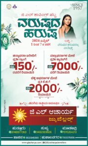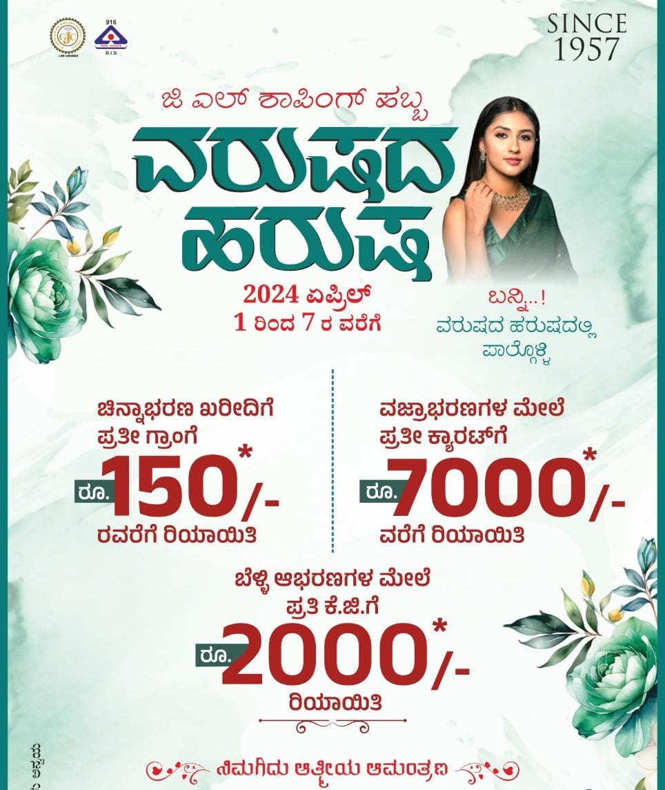 ಏ.1ರಿಂದ -7 ರವರೆಗೆ ಜಿ.ಎಲ್. ಆಚಾರ್ಯ ಜ್ಯುವೆಲ್ಲರ್ಸ್ ನಲ್ಲಿ “ಜಿ.ಎಲ್. ಶಾಪಿಂಗ್’ : “ವರುಷದ ಹರುಷ” ವಿಶೇಷ ಶಾಪಿಂಗ್ ಹಬ್ಬ – ಕಹಳೆ ನ್ಯೂಸ್