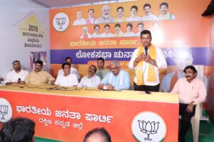 ಬಿಜೆಪಿಯ ಜಿಲ್ಲಾ ಚುನಾವಣೆ ಕಾರ್ಯಾಲಯದಲ್ಲಿ ಸೋಮವಾರ ನಡೆದ ವಕೀಲರ ಪರಿಷತ್ ಸಭೆಯಲ್ಲಿ ಮಾತನಾಡಿದ ಅವರು ವಕೀಲರು ಸಮಾಜದಲ್ಲಿ ಅತ್ಯಂತ ಗೌರವ ಮತ್ತು ಪ್ರತಿಷ್ಠೆಯನ್ನು ಹೊಂದಿದವರು. ಅವರ ಮಾತುಗಳನ್ನು ಯಾರೂ ಮೀರುವುದಿಲ್ಲ. ಪ್ರಧಾನಿ ನರೇಂದ್ರ ಮೋದಿ ಅವರ ನೇತೃತ್ವದಲ್ಲಿ ವಿಕಸಿತ ಭಾರತವನ್ನು ನಿರ್ಮಿಸುವಲ್ಲಿ ವಕೀಲರ ಸಮುದಾಯ ಕೈಜೋಡಿಸಬೇಕು ಎಂದು ಕರೆ ನಿಡಿದರು.