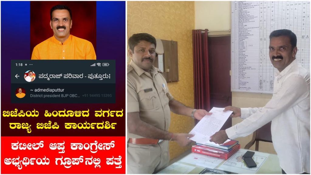 ಬಿಜೆಪಿ ಹಿಂದುಳಿದ ವರ್ಗಗಳ ಮೋರ್ಚಾದ ರಾಜ್ಯ ಕಾರ್ಯದರ್ಶಿ ಕಾಂಗ್ರೆಸ್ ಲೋಕಸಭಾ ಅಭ್ಯರ್ಥಿ ವಾಟ್ಸಪ್ ಗ್ರೂಪ್ ನಲ್ಲಿ ಪತ್ತೆ ಎಂದು ಬರೆಯಲಾಗಿದ್ದು, ಉದ್ದೇಶಪೂರ್ವಕವಾಗಿ ತೇಜೋವಧೆ ಮಾಡಲಾಗುತ್ತಿದೆ.