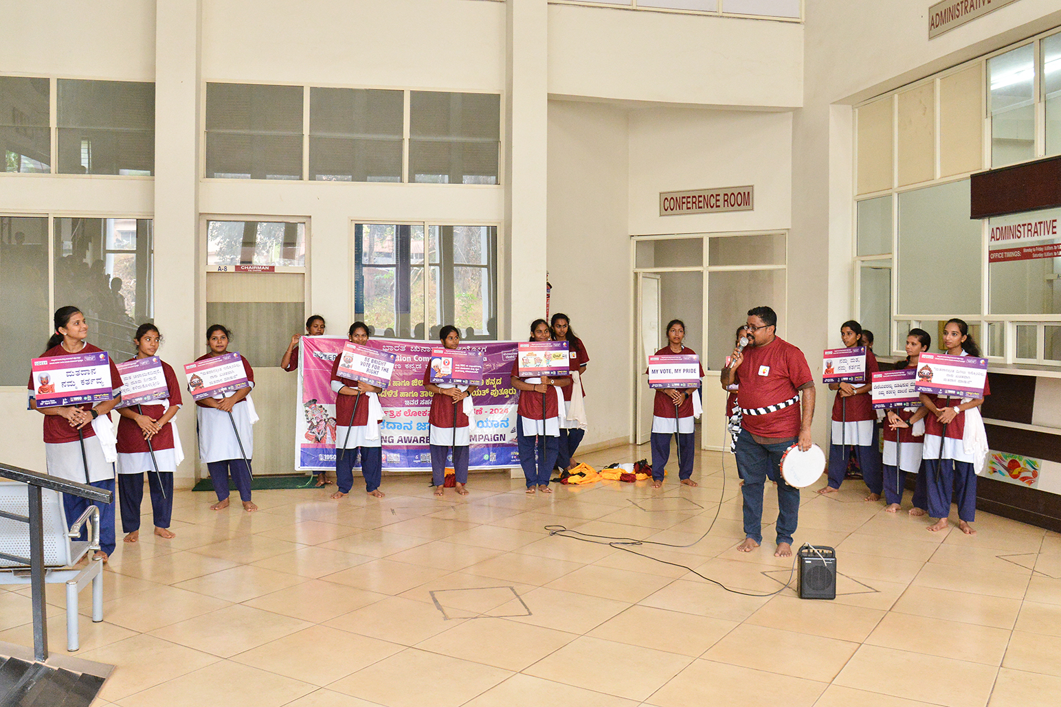 ಪುತ್ತೂರಿನ ಮಹಿಳಾ ಪ್ರಥಮ ದರ್ಜೆ ಕಾಲೇಜಿನ ವಿದ್ಯಾರ್ಥಿಗಳು ಸಂಸಾರ ಜೋಡು ಮಾರ್ಗ ನಿರ್ದೇಶಕ ಹಾಗೂ ಪತ್ರಕರ್ತ ಶ್ರೀಮೌನೇಶ್ ವಿಶ್ವಕರ್ಮ ಅವರ ನಿರ್ದೇಶನದಲ್ಲಿ ಬೀದಿನಾಟಕವನ್ನು ಸೊಗಸಾಗಿ ಪ್ರಸ್ತುತಪಡಿಸಿದರು. ಬೀದಿನಾಟಕದ ಮೂಲಕವಿದ್ಯಾರ್ಥಿಗಳು ಪ್ರಜಾ ಪ್ರಭುತ್ವದ ಮಹತ್ವದ ಬಗ್ಗೆ, ಯೋಗ್ಯ ಅಭ್ಯರ್ಥಿಯನ್ನು ಆಯ್ಕೆ ಮಾಡಲು ಮತ್ತು ಮತದಾನದಅವಕಾಶವನ್ನು ಸದುಪಯೋಗಪಡಿಸಿಕೊಳ್ಳಲು ಸಮಾಜಕ್ಕೆ ಮತದಾನದ ಬಗ್ಗೆ ಅರಿವು ಮೂಡಿಸಲು ಮತ್ತು ಯಾವುದೇ ಆಮಿಷಗಳಿಗೆಒಳಗಾಗದೆ ಧೈರ್ಯ ಮತ್ತು ಸ್ವಾಭಿಮಾನದಿಂದ ತಮ್ಮ ಹಕ್ಕುಗಳನ್ನು ಚಲಾಯಿಸುವಂತೆ ಕರೆ ನೀಡಿದರು.