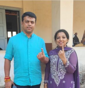 ಬೆಳ್ತಂಗಡಿ: ಶಾಸಕ ಹರೀಶ್ ಪೂಂಜ ಅವರು ತಮ್ಮ ಗ್ರಾಮ ಗರ್ಡಾಡಿಯ ಮತಗಟ್ಟೆ ಸಂಖ್ಯೆ 123ರಲ್ಲಿ ಬೆಳಗ್ಗೆಯೇ ಮತದಾನ ಚಲಾವಣೆ ನೆರವೇರಿಸಿದರು.