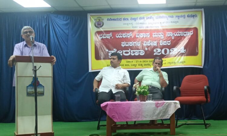 ಇವರು ವಿವೇಕಾನಂದ ವಿದ್ಯಾವರ್ಧಕ ಸಂಘ ಪುತ್ತೂರು ಇದರ ಅಂಗ ಸಂಸ್ಥೆಯಾದ ವಿವೇಕಾನಂದ ಕಲಾ,ವಿಜ್ಞಾನ ಮತ್ತು ವಾಣಿಜ್ಯ ಮಹಾವಿದ್ಯಾಲಯ (ಸ್ವಾಯತ್ತ) ಪುತ್ತೂರು ಐಕ್ಯೂಎಸಿ ಮತ್ತು ಕಲ್ಲಡ್ಕ ಶ್ರೀರಾಮ ಪ್ರಥಮ ದರ್ಜೆ ಕಾಲೇಜು ಇವುಗಳ ಸಹಯೋಗದಲ್ಲಿ ಭವಿಷ್, ಯಶಸ್,ವಿಕಾಸ ಮತ್ತು ನ್ಯಾಯಾಧಾರ ಘಟಕಗಳ ವಿಶೇಷ ಶಿಬಿರ ಪ್ರೇರಣಾ 2024 ಉದ್ಧಾಟಿಸಿ ಮಾತನಾಡಿದರು.