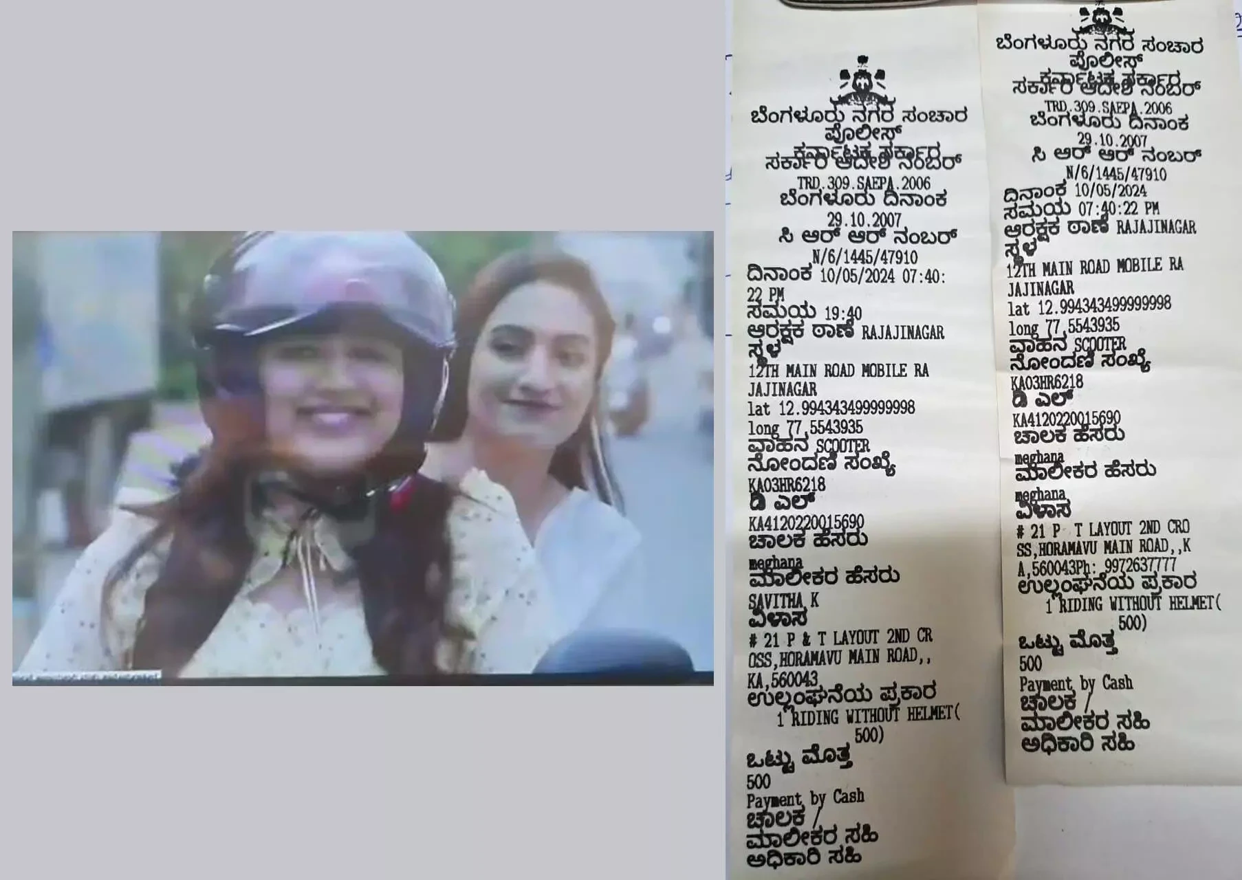 ಖಾಸಗಿ ವಾಹಿನಿಯಲ್ಲಿ ಪ್ರಸಾರವಾಗುತ್ತಿರುವ ‘ಸೀತಾರಾಮ’ ಹೆಸರಿನ ಧಾರಾವಾಹಿಯ 14ನೇ ಸಂಚಿಕೆಯಲ್ಲಿ ಇಬ್ಬರು ದ್ವಿಚಕ್ರ ವಾಹನದಲ್ಲಿ ಸಂಚರಿಸುವ ದೃಶ್ಯವೊಂದಿತ್ತು.