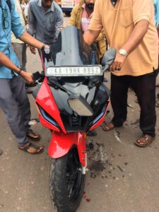 ಬೆಳಗ್ಗಿನ ಜಾವ ಬೈಕನ್ನು ಸರ್ವಿಸ್ ಸ್ಟೇಷನ್ಗೆ ಹೋಗಿ ಹಿಂತಿರುಗಿ ಬರ್ವಗ ಅಲ್ಲಿಯೇ 100ಮೀಟರ್ ಅಂತರದಲ್ಲಿ ಅಪಘಾತ ಸಂಭವಿಸಿದೆ.