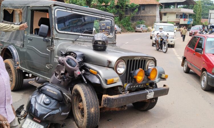 ದ್ವಿಚಕ್ರವಾಹನಕ್ಕೆ ಡಿಕ್ಕಿ ಹೊಡೆದ ಜೀಪು : ಗಂಭೀರ ಗಾಯಗೊಂಡ ಸ್ಕೂಟರ್ ಸವಾರ – ಕಹಳೆ ನ್ಯೂಸ್