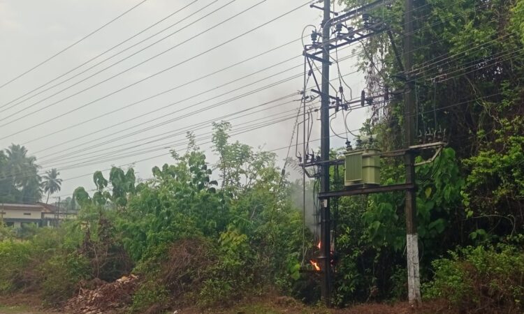 ಬಂಟ್ವಾಳ: ಬಿ.ಸಿ.ರೋಡು ಕೈಕಂಬದ ಮೊಡಂಕಾಪು ಬಳಿ ಮಂಗಳವಾರ ಸುರಿದ ಗಾಳಿ ಮಳೆಯ ಸಂದರ್ಭ ವಿದ್ಯುತ್ ಟ್ರಾನ್ಸ್ಫಾರ್ಮರ್ ಕಂಬಕ್ಕೆ ಶಾರ್ಟ್ಸರ್ಕಿಟ್ನಿಂದ ಬೆಂಕಿ ಕಾಣಿಸಿಕೊಂಡು ಟ್ರಾನ್ಸ್ಫಾರ್ಮರ್ನ ಕಂಬ ಹಾಗೂ ಇದಕ್ಕೆ ಸಂಬAಧಪಟ್ಟ ವಿದ್ಯುತ್ ತಂತಿಗಳು ಸಂಪೂರ್ಣ ಸುಟ್ಟು ಹೋಗಿರುತ್ತದೆ.
