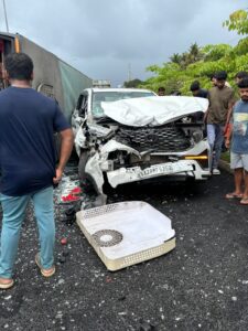 ಲಾರಿ ಡಿಕ್ಕಿ ಹೊಡೆದ ರಭಸಕ್ಕೆ ಕಾರಿನ ಮುಂಭಾಗ ಸಂಪೂರ್ಣ ನಜ್ಜುಗುಜ್ಜಾಗಿದೆ. ಕಾರಿನಲ್ಲಿದ್ದ ಪ್ರಯಾಣಿಕರಿಗೆ ಗಾಯವಾಗಿದ್ದು, ಅವರನ್ನು ಸಮೀಪದ ಆಸ್ಪತ್ರೆಗೆ ದಾಖಲಿಸಲಾಗಿದೆ. ಮೀನಿನ ಲಾರಿ ಕೂಡ ರಸ್ತೆಗೆ ಉರುಳಿಬಿದ್ದಿದ್ದು, ಅದರ ಮುಂಭಾಗಕ್ಕೂ ಹಾನಿಯಾಗಿದೆ. ಲಾರಿಯಲ್ಲಿ ಸಾಗಿಸಲಾಗುತ್ತಿದ್ದ ಮೀನುಗಳನ್ನು ಬೇರೆ ವಾಹನಕ್ಕೆ ಸ್ಥಳಾಂತರ ಮಾಡಲಾಯಿತು.