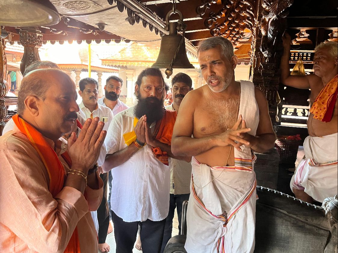 ಪುತ್ತೂರು : ನೈರುತ್ಯ ಪದವೀಧರ ಕ್ಷೇತ್ರದ ಪಕ್ಷೇತರ ಅಭ್ಯರ್ಥಿ ರಘುಪತಿ ಭಟ್ ಪುತ್ತೂರು ಶ್ರೀ ಮಹಾಲಿಂಗೇಶ್ವರ ದೇವಸ್ಥಾನಕ್ಕೆ ಭೇಟಿ ನೀಡಿ ಶ್ರೀ ದೇವರ ದರ್ಶನ ಪಡೆದರು.ಹೂವಿನ ಹಾರ ಹಾಕಿ ರಘುಪತಿ ಭಟ್ ಅವರನ್ನು ಸ್ವಾಗತಿಸಿದರು.
