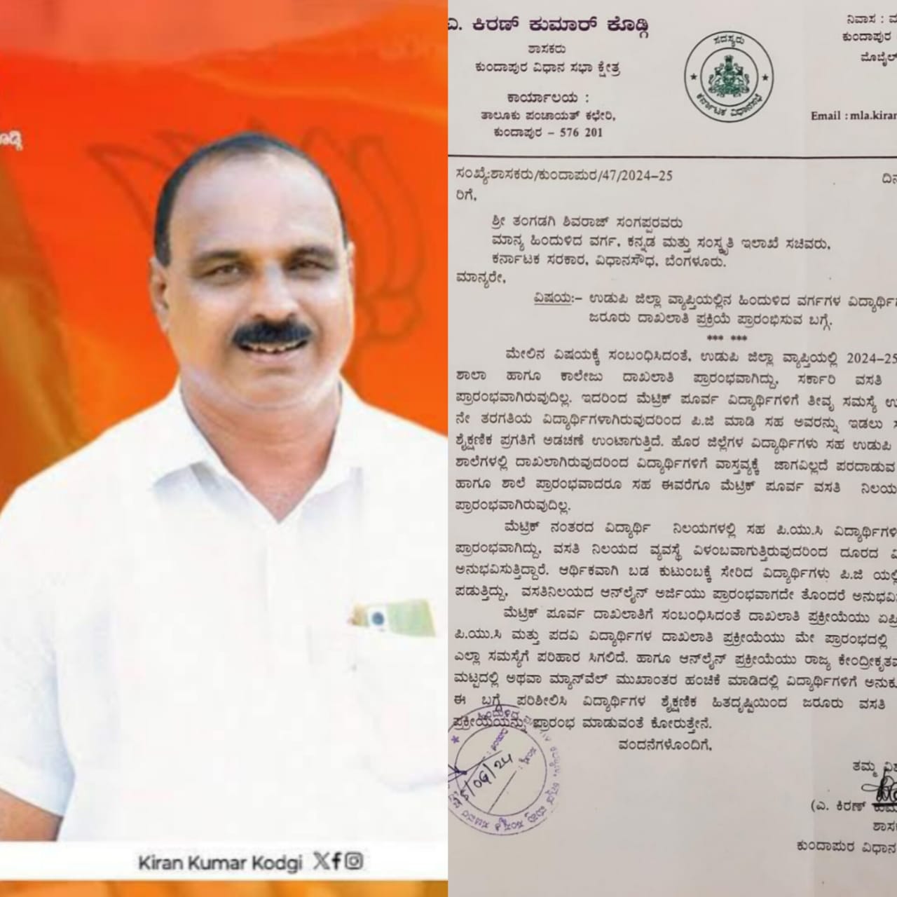 ಹಿಂದುಳಿದ ವರ್ಗಗಳ ವಿದ್ಯಾರ್ಥಿ ನಿಲಯಗಳಲ್ಲಿ ವಸತಿ ನಿಲಯದಲ್ಲಿ ಜರೂರು ದಾಖಲಾತಿ ಪ್ರಕ್ರಿಯೆ ಪ್ರಾರಂಭಿಸುವ ಬಗ್ಗೆ ಕುಂದಾಪುರ ಶಾಸಕರಿಂದ ಮನವಿ -ಕಹಳೆ ನ್ಯೂಸ್