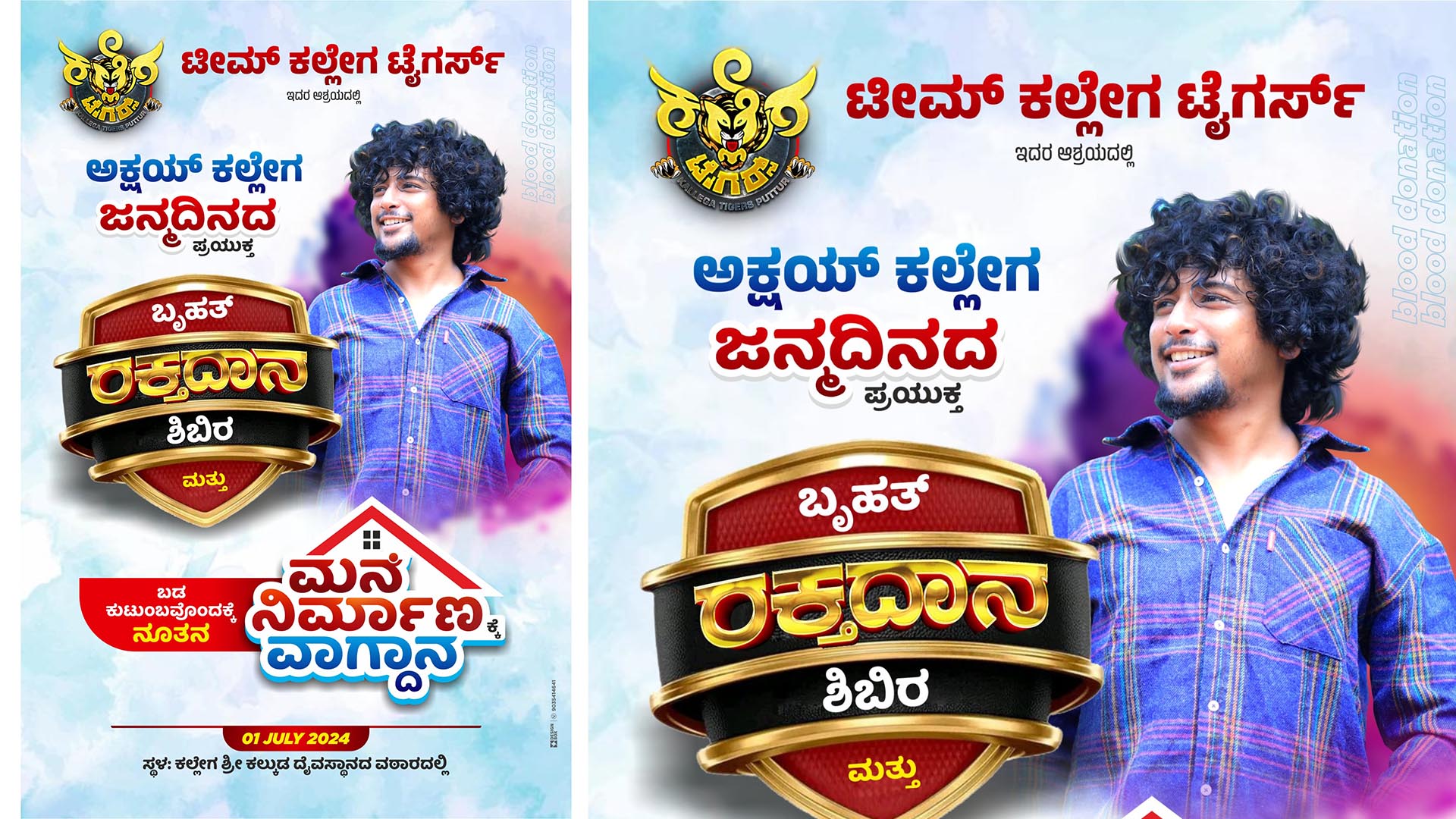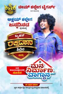 ಜುಲೈ 1 ರಂದು ಕಲ್ಲೇಗ ಟೈಗರ್ಸ್ ಮುಖ್ಯಸ್ಥ ಅಕ್ಷಯ್ ಕಲ್ಲೇಗ ಜನ್ಮದಿನದ ಪ್ರಯುಕ್ತ ಬೃಹತ್ ರಕ್ತದಾನ ಶಿಬಿರ ; ಬಡ ಕುಟುಂಬವೊಂದಕ್ಕೆ ನೂತನ ಮನೆ ನಿರ್ಮಾಣ ವಾಗ್ದಾನ – ಕಹಳೆ ನ್ಯೂಸ್