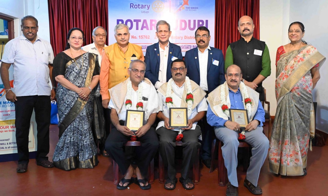 ಉಡುಪಿ :ರೋಟರಿ ಉಡುಪಿ ವತಿಯಿಂದ ವಿದ್ಯಾರ್ಥಿಗಳ ದತ್ತು ಸ್ವೀಕಾರ, ವೈದ್ಯರ ದಿನಾಚರಣೆ, ಪತ್ರಿಕಾ ದಿನಾಚರಣೆ ಮತ್ತು ಲೆಕ್ಕಪರಿಶೋಧಕರ ದಿನಾಚರಣೆ ಕಾರ್ಯಕ್ರಮವು ಸೋಮವಾರ ಮಹಿಷಮರ್ಧಿನಿ ರೋಟರಿ ಸ್ಕೌಟ್ ಸಭಾಂಗಣದಲ್ಲಿ ಸೋಮವಾರ ಜರುಗಿತು.